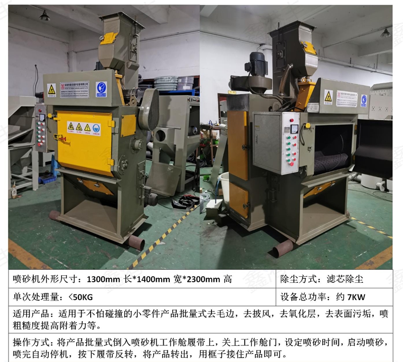 3、机器砂料自动回收利用,耗材少,成本低,是现代企业理想的表面处理设备。